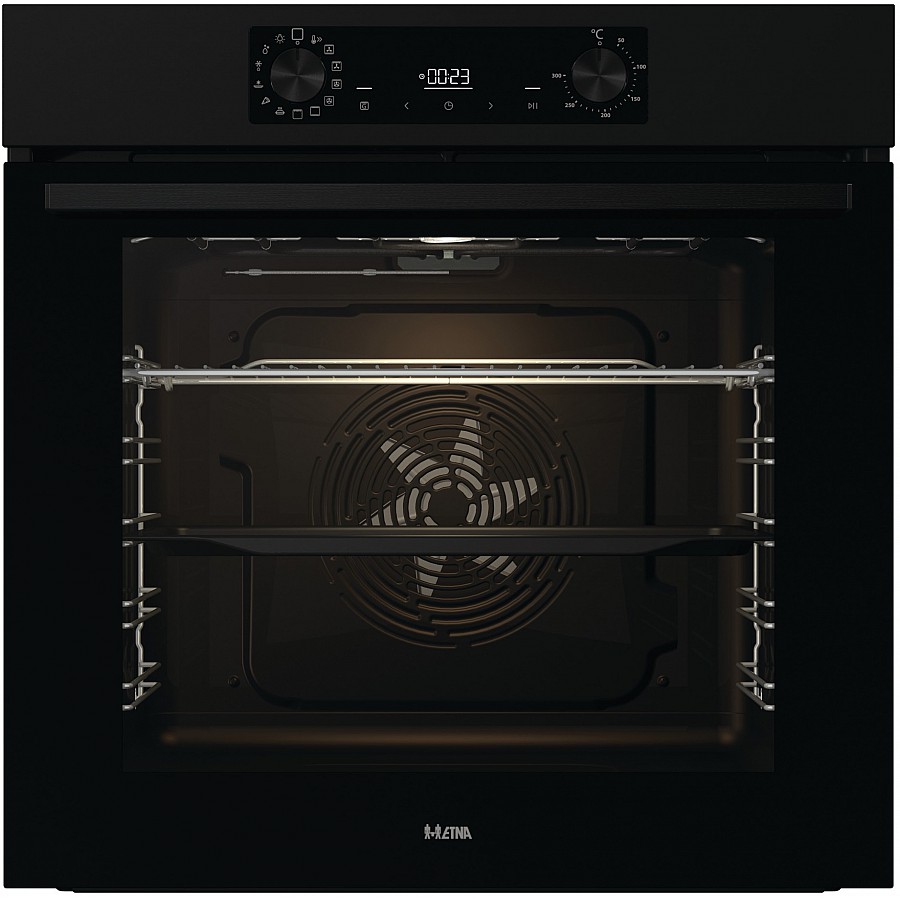 De Etna OM316MZ is een prijstechnisch zeer interessante inbouw oven uitgevoerd in de kleur mat zwart en voorzien van een 2-knops bediening: een draaiknop voor de programma keuze en een draaiknop voor het instellen van de tijd/temperatuur. Dit inbouw model is voorzien van een inhoud van 77 liter en is eenvoudig te openen door middel van een klapdeur. De OM316MZ heeft een zuinig energieklasse A+ label.