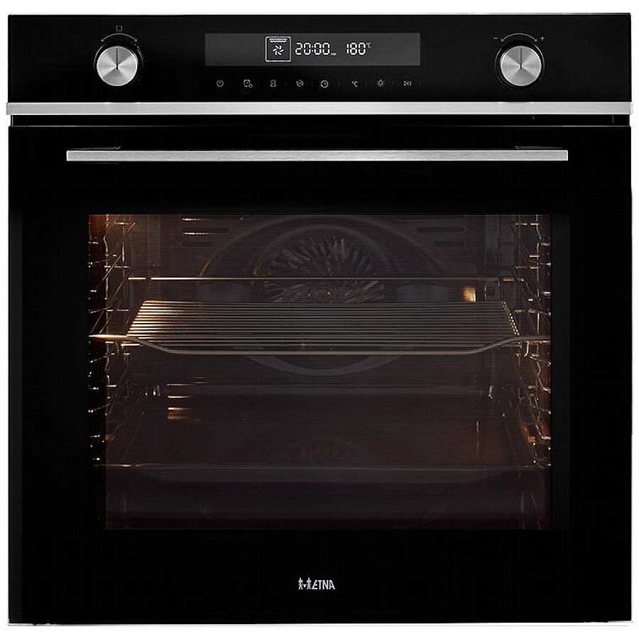 De Etna OM470ZT is een strak vormgegeven inbouw oven van 60 cm. hoog uitgevoerd in het zwart en voorzien van een netto inhoud van 72 liter. Deze multifunctionele oven met hetelucht functie is eenvoudig te bedienen met 2 draaiknoppen ondersteund met een overzichtelijk display. De oven heeft 13 verschillende functies waaronder hetelucht, onder- en bovenwarmte en grill. Met de hetelucht functie is het mogelijk om op meerdere niveaus tegelijkertijd gerechten te bereiden. Handig als je niet kunt wachten en die twee pizza’s gewoon in één keer klaar wil maken!