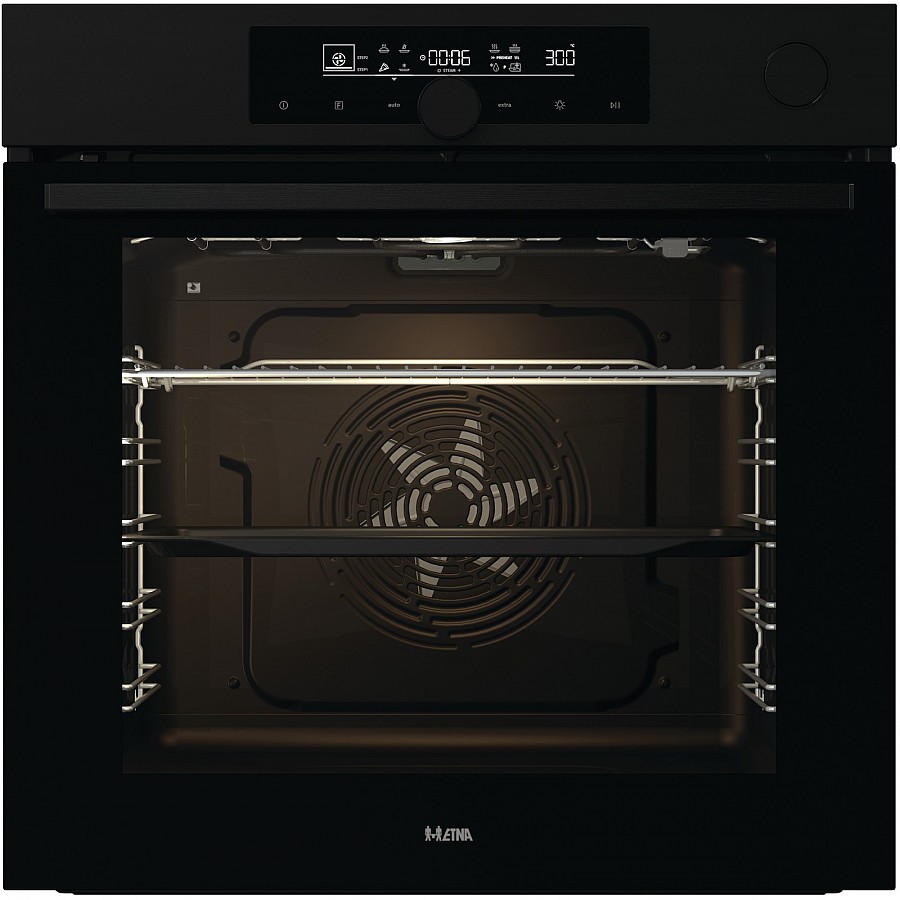 De Etna OPS916MZ is een inbouw oven uitgevoerd in het mat zwart en voorzien van een zelfreinigende pyrolyse functie. Dit inbouw model is voorzien van een inhoud van 77 liter en is eenvoudig te openen door middel van een klapdeur. De OPS916MZ heeft een zuinig energieklasse A+ label.