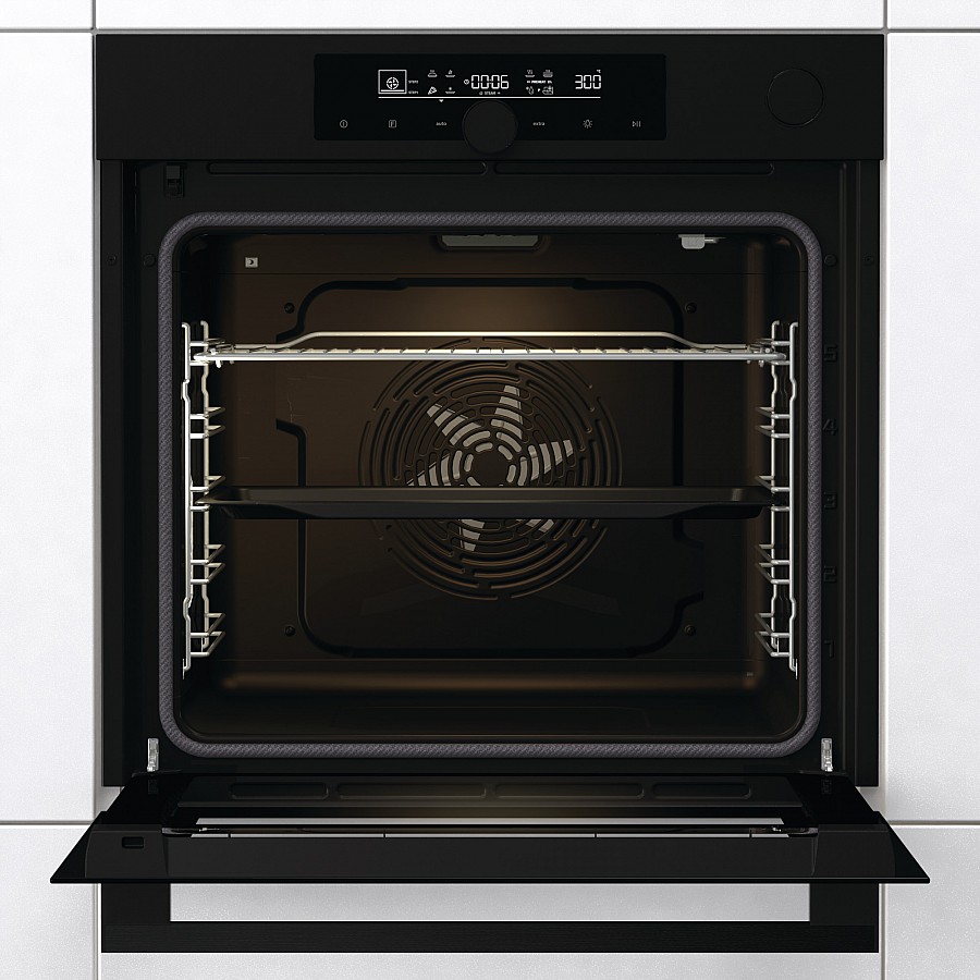 Praktisch verder bij deze oven is de pyrolyse functie. Gedurende ruim een uur zal de binnenruimte worden schoongebrand op een temperatuur van 450 tot 500 graden. Tijdens dit proces zal de ovendeur kindveilig afgesloten zijn en niet te heet worden. Na afloop van het programma dienen alleen de verkoolde resten verwijderd te worden, waarna de oven weer klaar is voor gebruik.