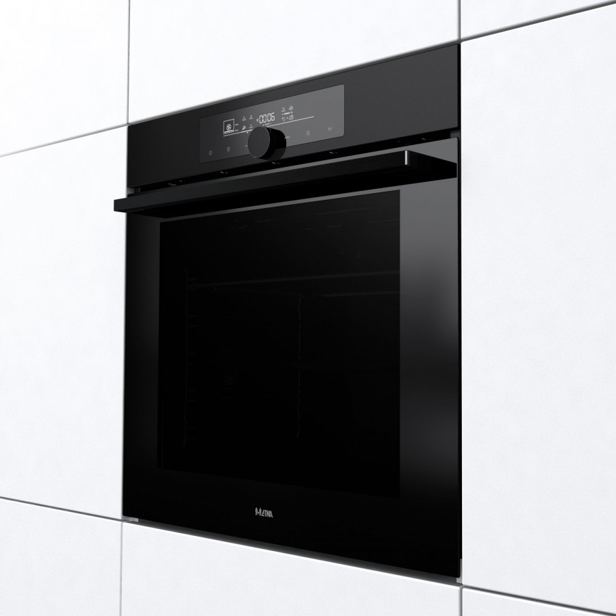 Het matzwarte design gecombineerd met een zwart glazen deur geeft de OPZ916MZ een moderne en stijlvolle uitstraling. De softclose-deur zorgt voor een geruisloze en soepele sluiting, wat bijdraagt aan zowel het gebruikscomfort als de duurzaamheid van de oven.