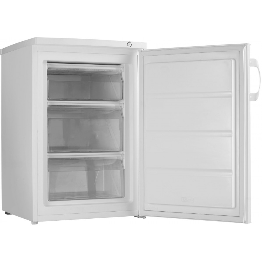 Het tafelmodel ontwerp met afmetingen van 84,5 x 56,0 x 57,5 cm maakt deze vriezer ideaal voor kleinere keukens of als extra vriesruimte in bijvoorbeeld de bijkeuken.
