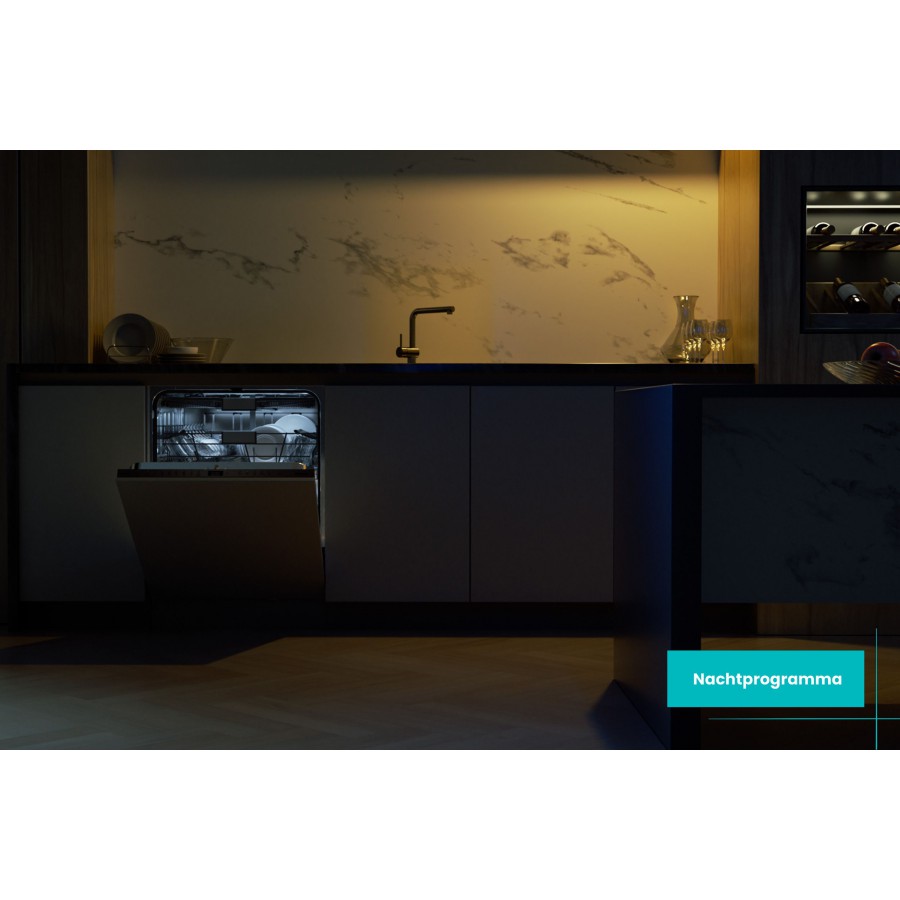 De vaatwasser biedt ruimte aan 16 couverts dankzij de flexibele besteklade en de in hoogte verstelbare bovenkorf, zelfs wanneer deze is beladen. Dit maakt het mogelijk om de indeling aan te passen aan verschillende soorten vaat, van grote pannen tot delicate glazen.