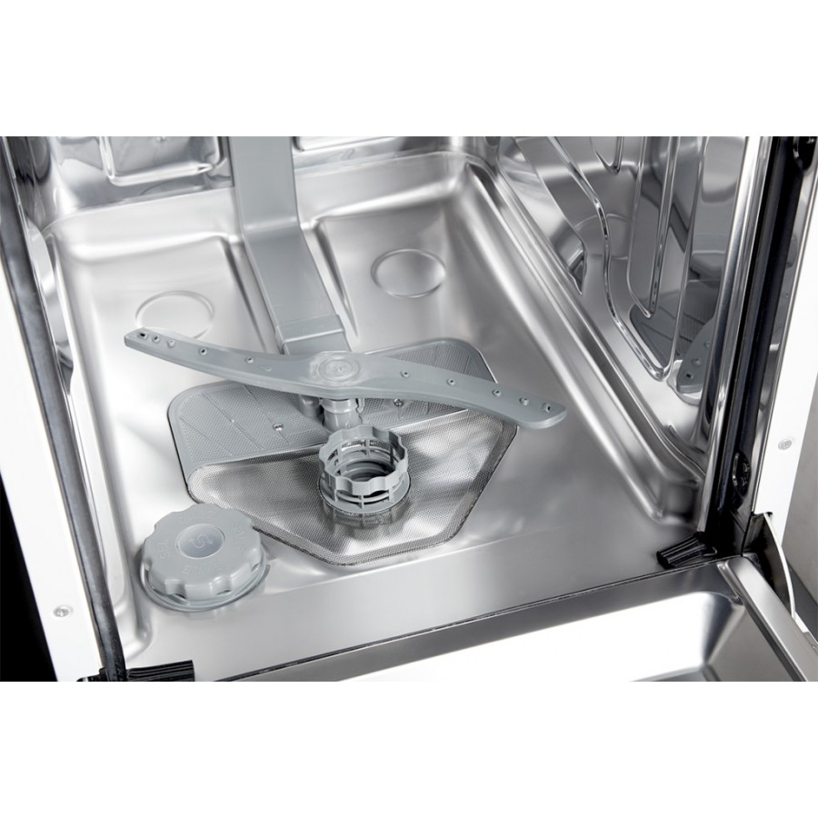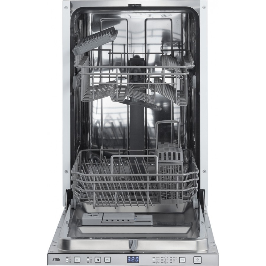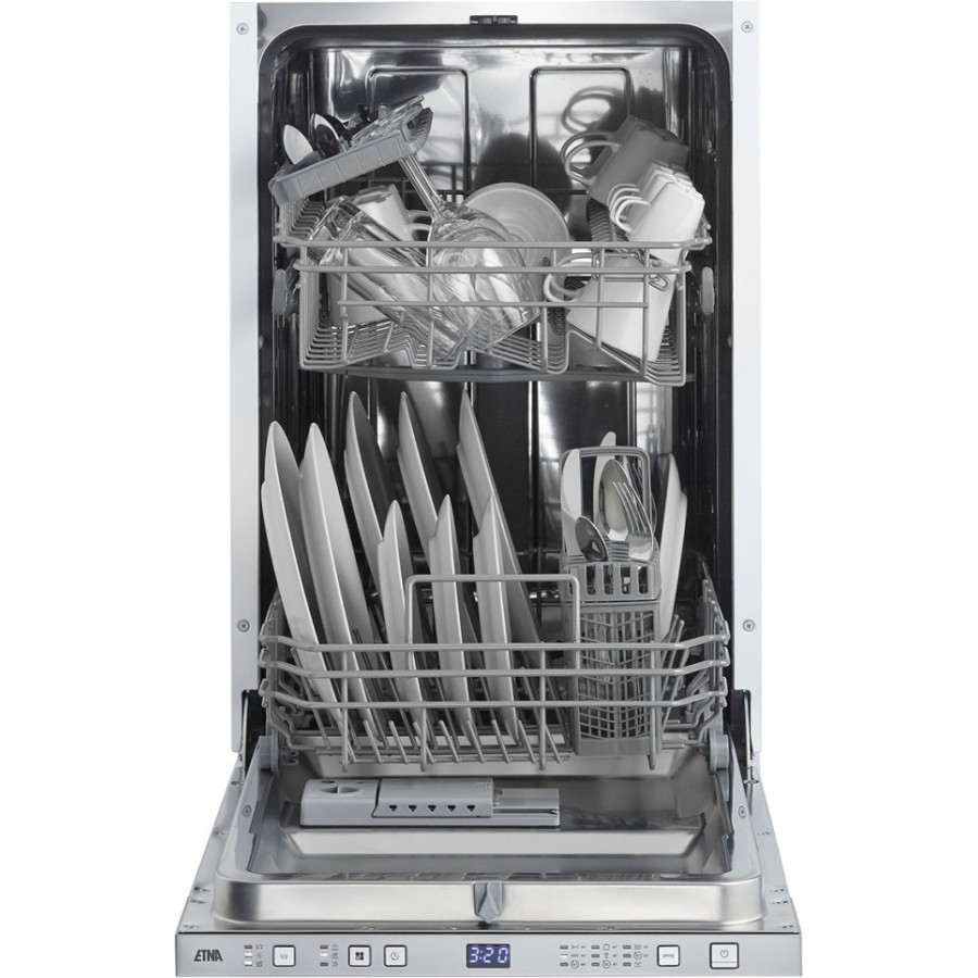 Deze Etna VW47SM is een volledig geïntegreerde vaatwasser van 45 cm. breed uitgevoerd met twee korven en voorzien van een energieklasse E label. Deze vaatwasser heeft maar liefst negen verschillende programma’s, variërend van snel spoelen tot eco of juist intensief. Daarnaast geeft de vaatwasser de keuze uit vijf reinigingstemperaturen, in te stellen op het RVS bedieningspaneel bovenop de rand van de deur.