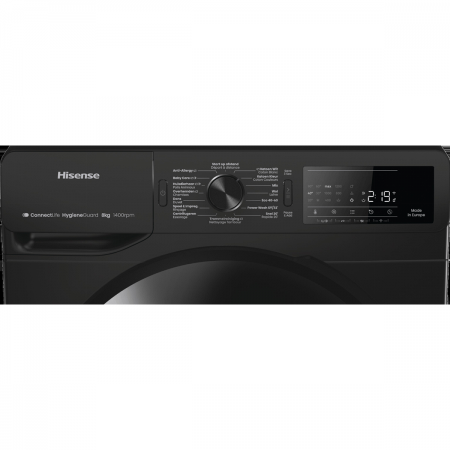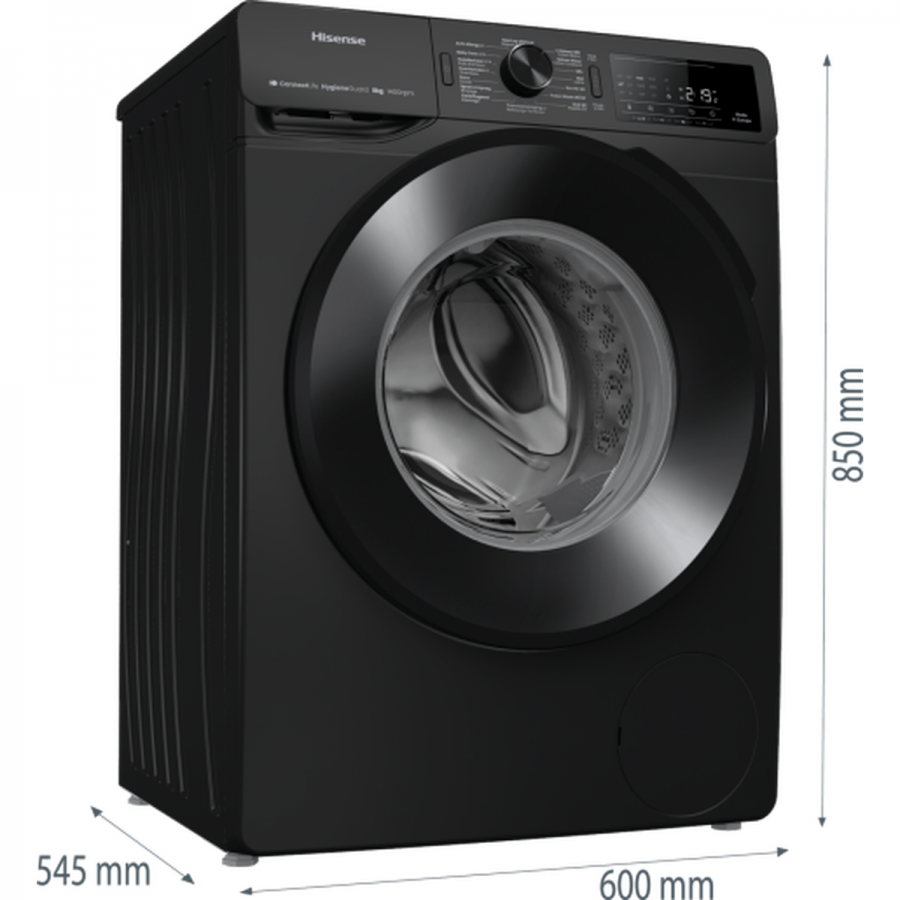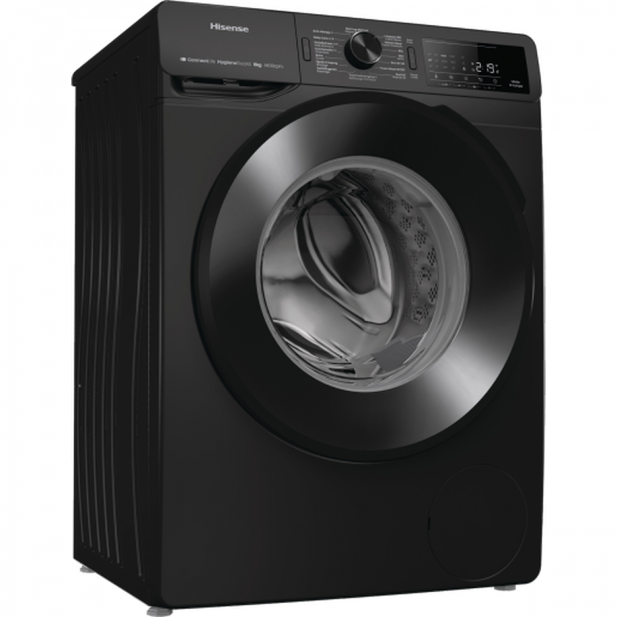 Deze Hisense WF3V843BB/BLX voorlader wasmachine combineert een energiezuinige A-10% klasse met een krachtige 1400 toeren centrifugesnelheid, een handige stoomfunctie voor hygiëne en kreukelvermindering, en slimme bediening via de ConnectLife-app voor ultiem wasgemak.