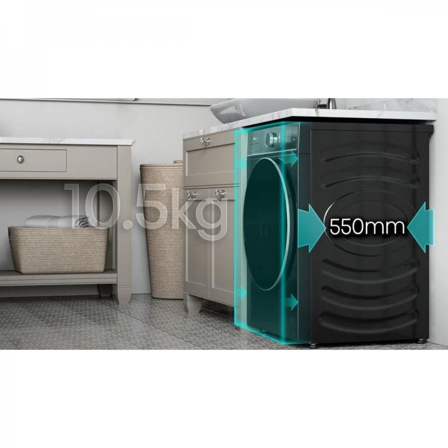Deze Hisense WF5I1045BBQ voorlader wasmachine biedt een indrukwekkende capaciteit van 10,5 kilogram, waardoor u grote wassen in één keer kunt doen. Het energiezuinige A-label zorgt voor een laag verbruik, terwijl het innovatieve AutoDose systeem automatisch de perfecte hoeveelheid wasmiddel doseert. Met de KitchenFit diepte van slechts 55 centimeter past deze machine moeiteloos in uw keukeninrichting. De krachtige 1400 toeren centrifugesnelheid zorgt voor droger wasgoed, wat uw droogtijd aanzienlijk verkort. Bedien de wasmachine eenvoudig op afstand via de ConnectLife app en geniet van ultiem gebruiksgemak.