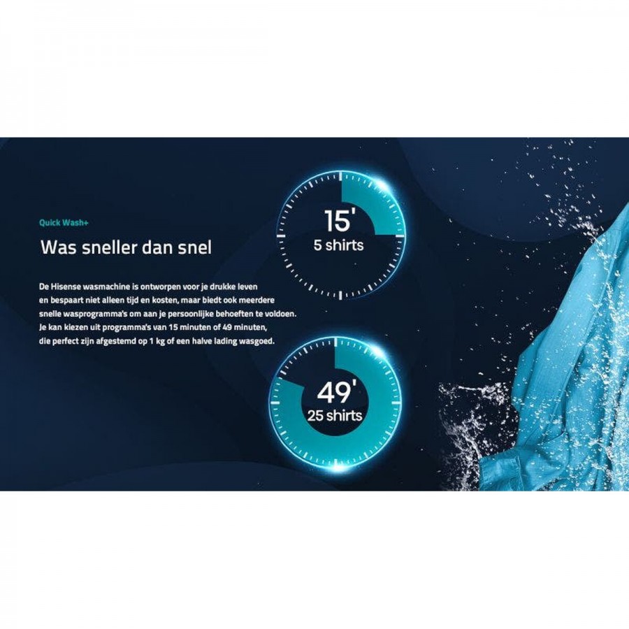 Dit innovatieve systeem zorgt voor een naadloze overdracht van het gekozen wasprogramma naar een compatibele Hisense droger. De droger kiest hierdoor volledig automatisch het bijpassende droogprogramma, wat u veel tijd en handmatig gepuzzel bespaart en zorgt voor een perfect afgestemde was- en droogcombinatie.