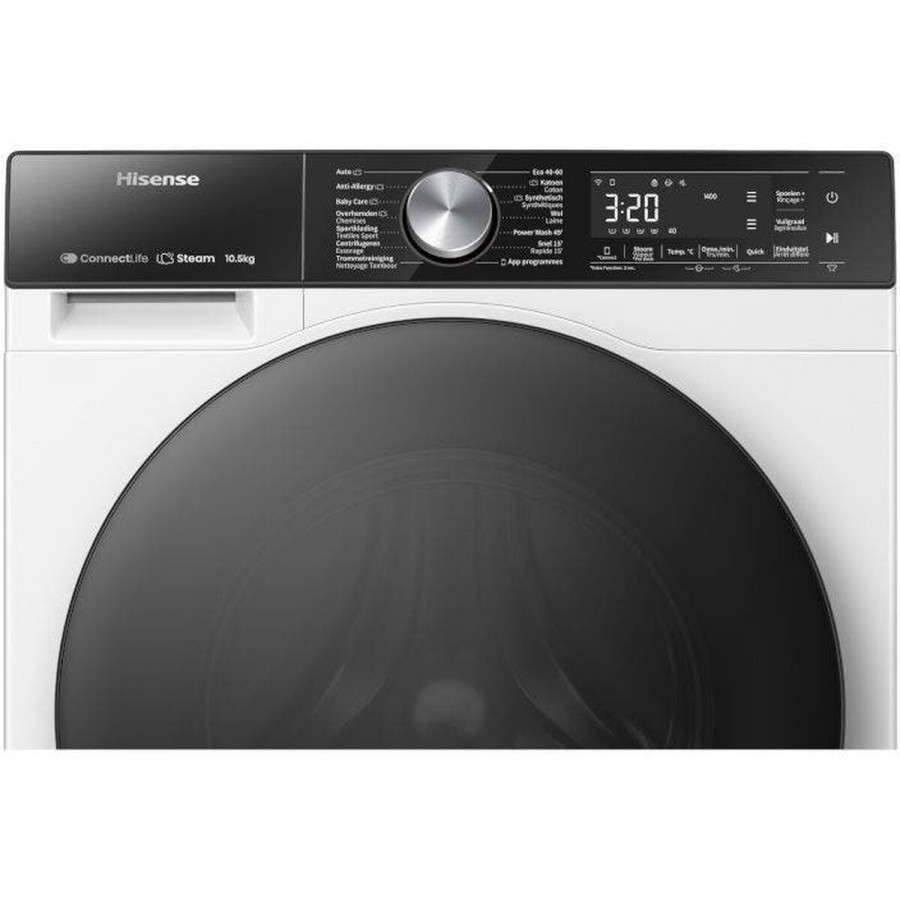 Deze Hisense WF5S1043BW voorlader wasmachine combineert uitzonderlijke energiezuinigheid met intelligente wastechnologie voor een superieure reiniging. Met een ruime capaciteit van 10,5 kg is hij perfect voor grotere huishoudens. De geavanceerde stoomfunctie verwijdert effectief 99,9% van de bacteriën en allergenen voor een hygiënisch schone was. Dankzij het ConnectLife systeem communiceert de machine naadloos met een compatibele droger voor een volledig geautomatiseerd was- en droogproces. Bovendien zorgt het automatische wasprogramma voor een perfecte dosering van water en wasmiddel, wat resulteert in een optimale reiniging en aanzienlijke besparingen op je energierekening.