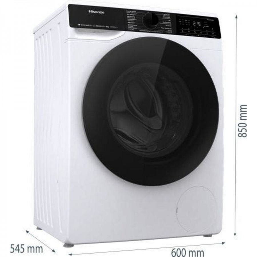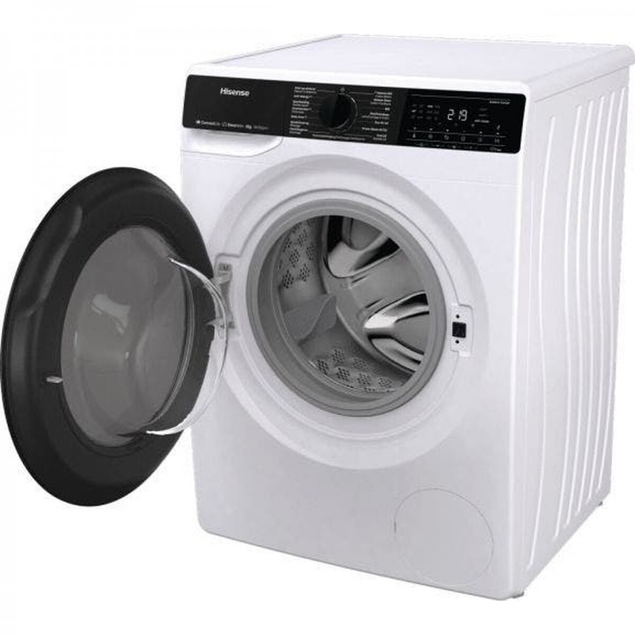 Deze Hisense WF5V843BW/BLX voorlader wasmachine combineert superieure energie-efficiëntie met baanbrekende technologie voor een onovertroffen waservaring. Geniet van een energiebesparing tot wel 10% ten opzichte van de topklasse A, wat direct resulteert in lagere kosten en een kleinere ecologische voetafdruk. De krachtige maar stille inverter motor zorgt voor een grondige reiniging met minimaal geluid. Met de handige ConnectLife app bedien je de machine op afstand en houd je de volledige controle over elk wasprogramma. De Allergy Steam-functie garandeert hygiënisch schone was door 99,9% van de bacteriën en allergenen te elimineren, terwijl de grote deuropening het in- en uitladen moeiteloos maakt.
