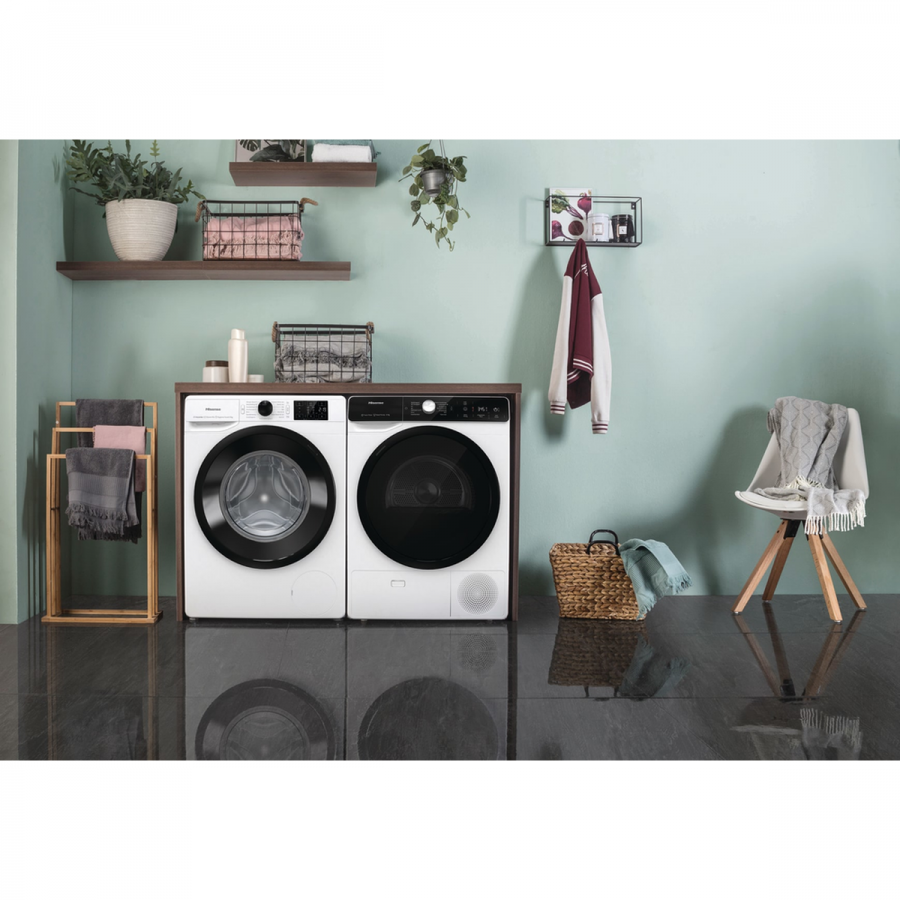 Deze Hisense WFGE901439VMQ voorlader wasmachine combineert een energiezuinige A-label prestatie met een ruime 9 kg capaciteit, een krachtige 1400 omwentelingen per minuut voor drogere was en een uiterst stille inverter motor voor superieure reiniging en dagelijks comfort.