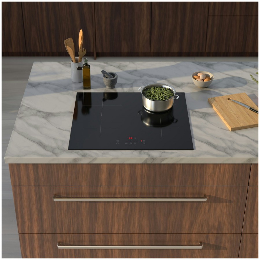 Je bedient de kookplaat heel eenvoudig met de tiptoetsen. Door middel van een sensor kan het vermogen per kookzone worden aangepast. Het enige wat je hoeft te doen is met je vingers op de toetsen drukken.