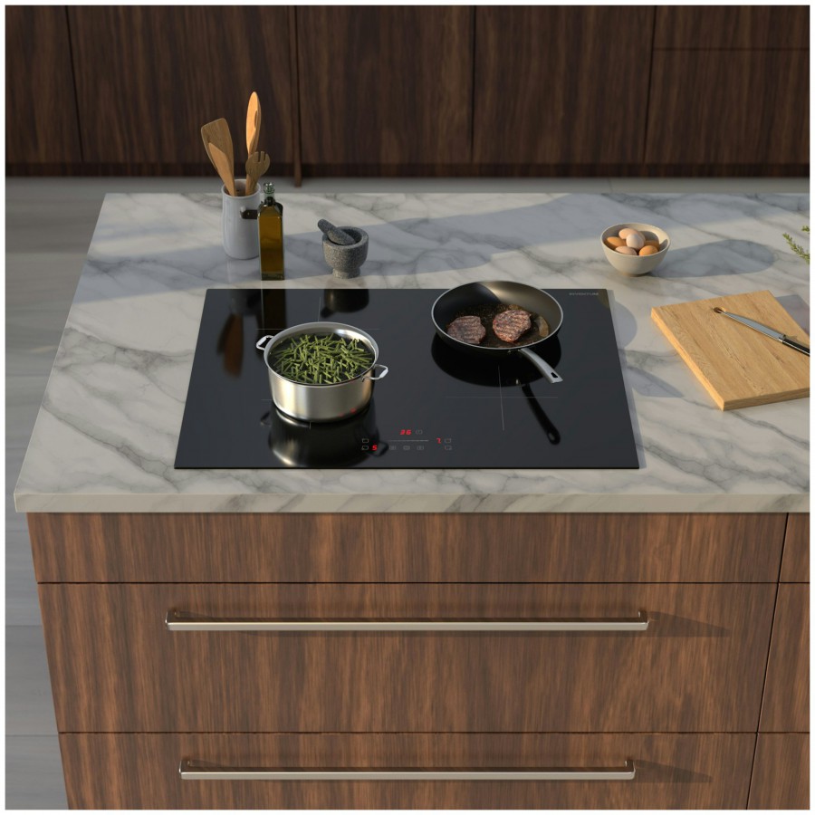 Je bedient de kookplaat heel eenvoudig met de tiptoetsen. Door middel van een sensor kan het vermogen per kookzone worden aangepast. Het enige wat je hoeft te doen is met je vingers op de toetsen drukken.