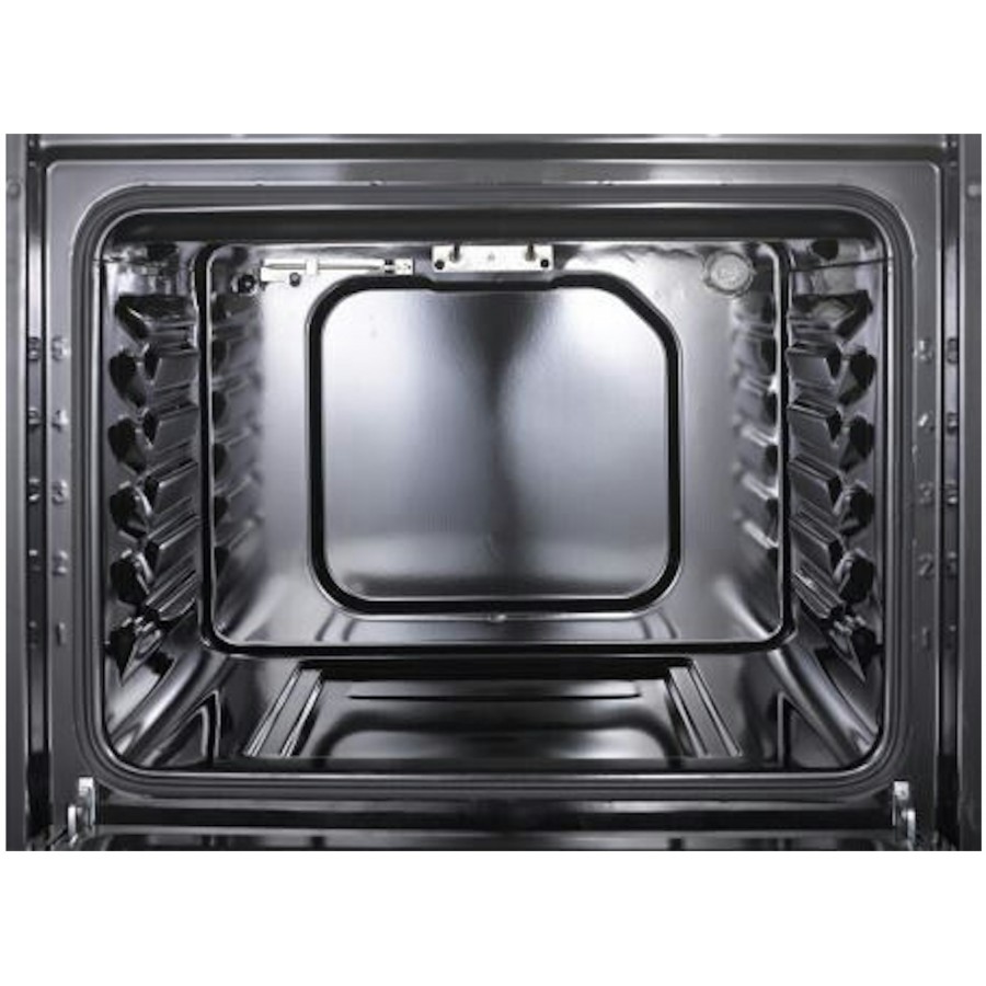 De ovendeur is voorzien van dubbel glas, wat zorgt voor betere isolatie en een lagere buitentemperatuur van de deur tijdens het gebruik, waardoor het veiliger is in de keuken.