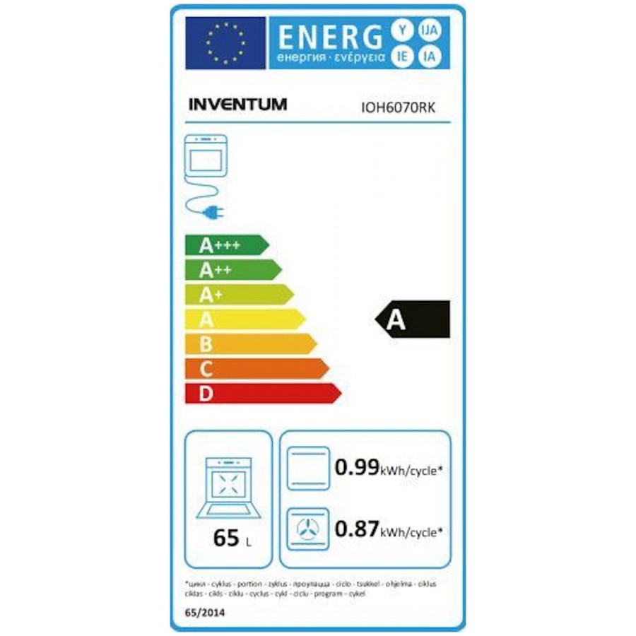 De Inventum IOH6070RK zwart is een inbouw oven met een inhoud van 65 liter. De oven heeft een nishoogte van 60 cm. Deze vaatwasser van het merk Inventum heeft energieklasse A.