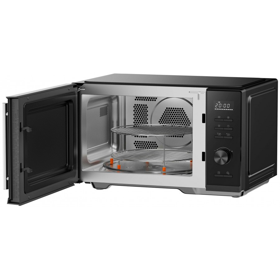 Deze combimagnetron is niet alleen krachtig, maar ook energiezuinig. Met functies zoals snelstart en voorverwarmen bespaar je tijd en energie. Het apparaat schakelt zichzelf automatisch uit na gebruik, wat bijdraagt aan een lager energieverbruik. Dit is niet alleen goed voor je portemonnee, maar ook voor het milieu.