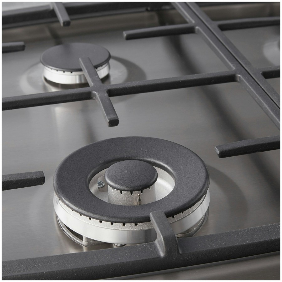 De pandragers van gietijzer geven deze inbouw gaskookplaat een robuuste uitstraling. Omdat de gietijzeren pandrager vrij zwaar is verschuift deze niet tijdens het koken. Daarnaast zorgt het ruwe oppervlak ervoor dat de pannen extra stevig staan.