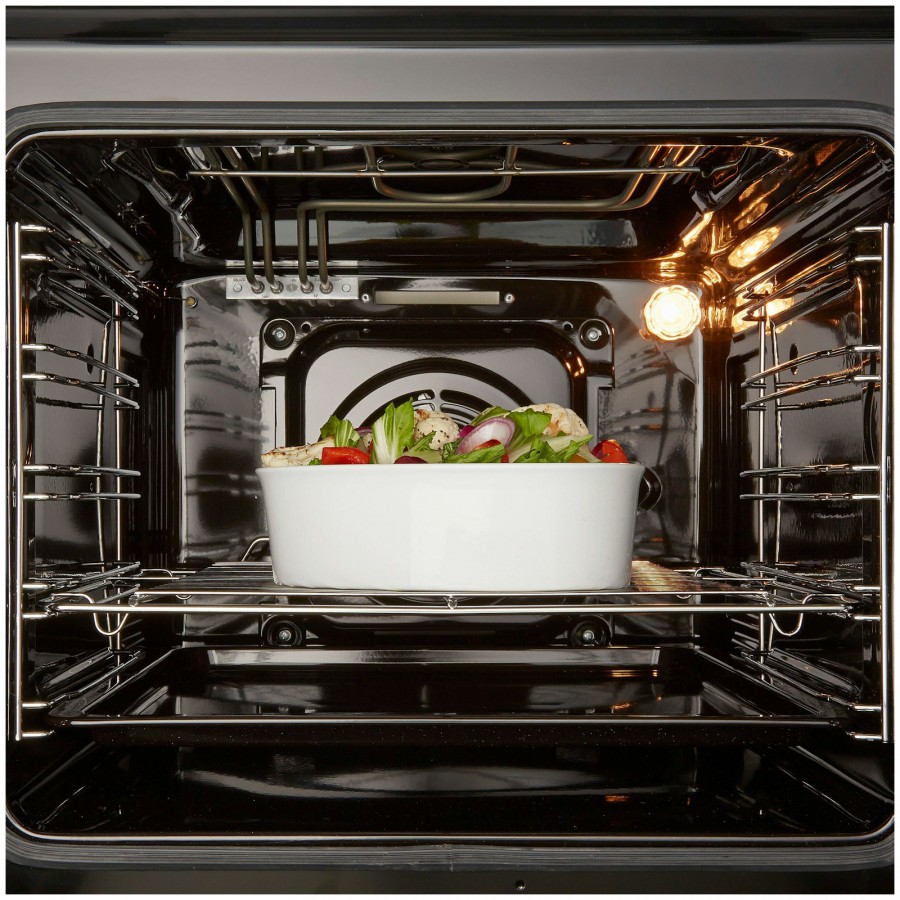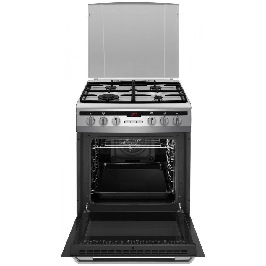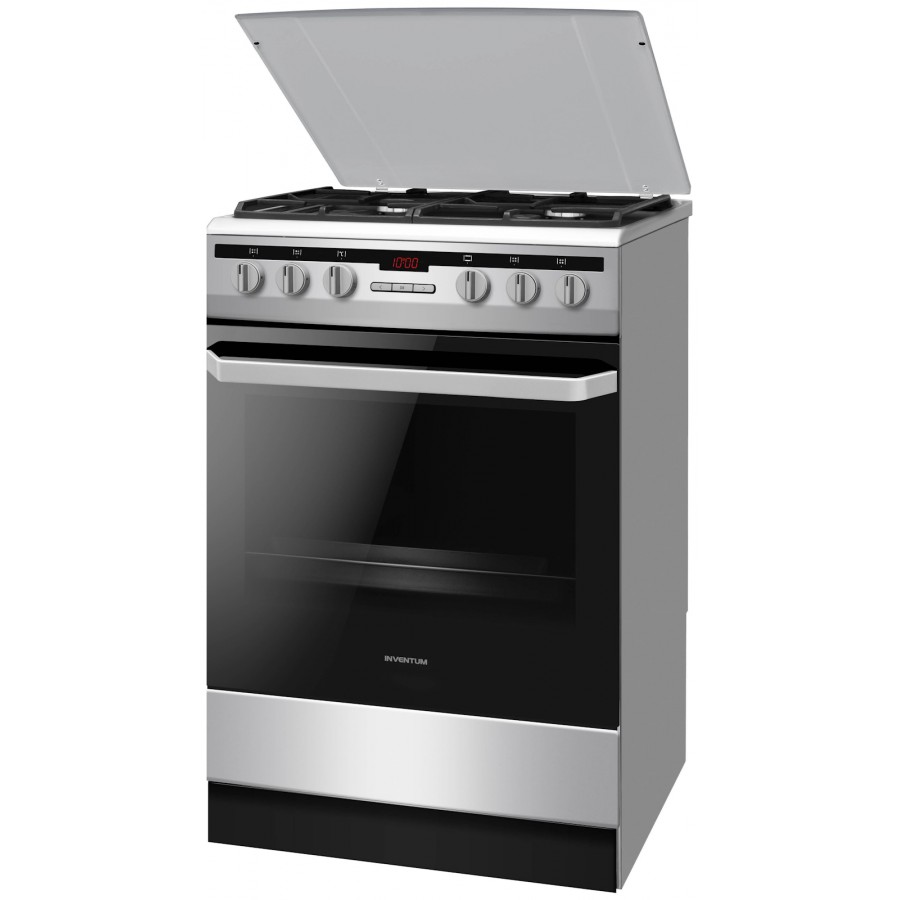 Met het vrijstaande Inventum fornuis VFG6034WGRVS kun je koken, bakken en braden tegelijk. Het kookgedeelte heeft een vangschaal van roestvrijstaal en 4 branders met gietijzeren pandragers. De branders zijn voorzien van geïntegreerde vonkontsteking en vlambeveiliging. Met de deksel kun je het kookgedeelte afdekken, als je het fornuis niet gebruikt. De heteluchtoven heeft een inhoud van 65 liter en 11 handige ovenprogramma's. Je kunt de temperatuur instellen van 50°C tot 250°C. De oven wordt geleverd met bakplaat en rooster. Door de 5 insteekniveaus kun je meerdere gerechten tegelijk bereiden. Schoonmaken van de oven gaat gemakkelijk door het easy clean emaille. Ook de ovendeur is eenvoudig te reinigen doordat deze helemaal van glas is, zonder lastige randen of kieren.