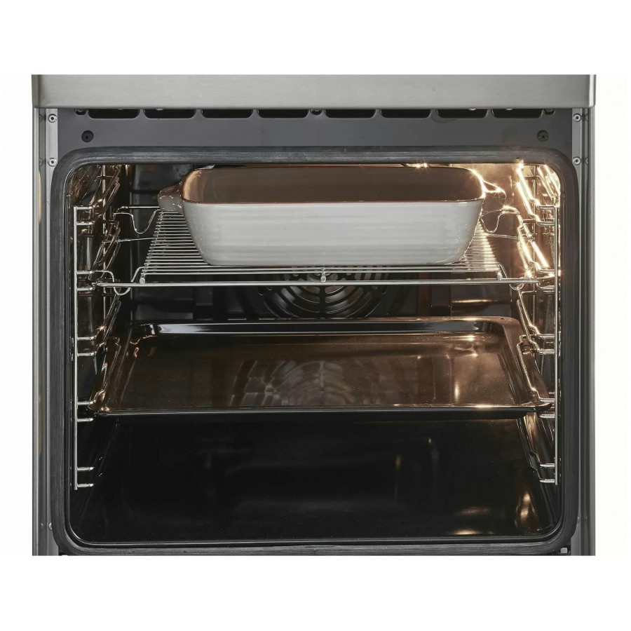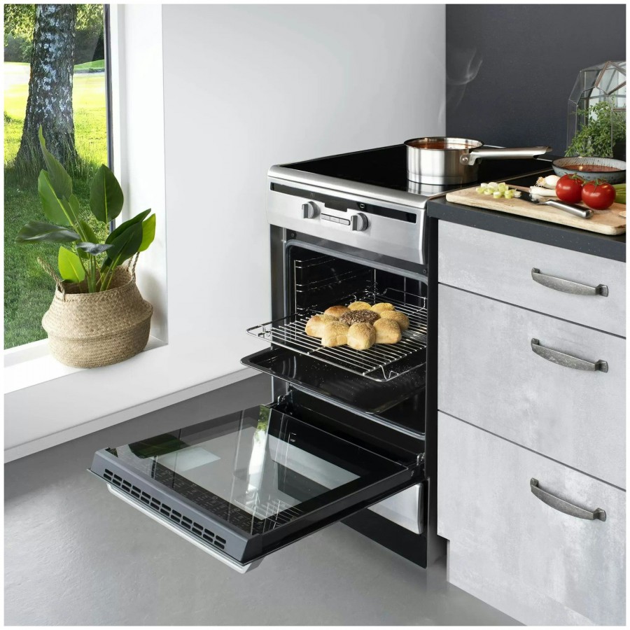 Met het multifunctionele ovensysteem bereid je gerechten op de manier zoals jij dat wilt. Kies één van de 11 verschillende ovenprogramma’s en maak heerlijke gerechten, die je dankzij de 5 insteekniveaus ook nog eens tegelijk bereidt. De kookplaat beschikt over warmhoudfunctie die de gerechten op serveertemperatuur houden. Daarnaast is de kookplaat uitgerust met automatische panherkenning, die ervoor zorgt dat de kookzones uitgeschakeld worden als de pan er vanaf wordt gehaald, en weer aan gaat wanneer de pan er weer op wordt geplaatst.Afmetingen (hxbxd): 850 x 500 x 600 mm.