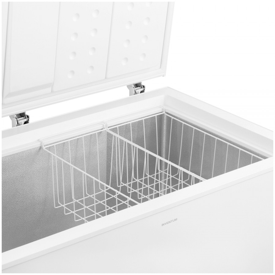 De Inventum VK1122W vrieskist heeft een netto inhoud van 290 liter, en biedt daardoor veel ruimte voor het bewaren van etenswaren. De vriezer is 85 cm hoog en heeft een breedte van 111,5 cm, met een diepte van 67 cm. Deze vriezer heeft energielabel E.