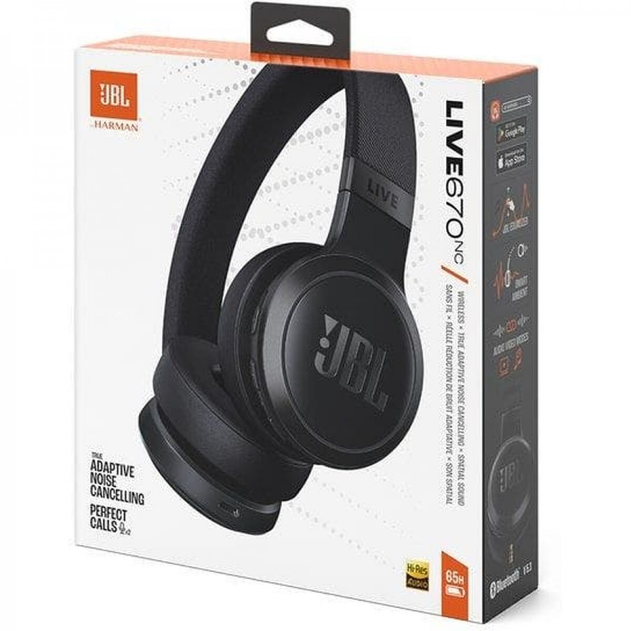 Met de JBL Live 670NC Zwart on-ear hoofdtelefoon dompel je jezelf onder in een wereld van puur geluidsplezier. Geniet van de legendarische JBL Signature Sound die door krachtige 40 mm-drivers wordt geleverd voor een rijke en meeslepende luisterervaring. De True Adaptive Noise Cancelling technologie met vier microfoons blokkeert storende omgevingsgeluiden intelligent, zodat je je volledig kunt concentreren op je muziek of werk. Met de handige Smart Ambient modus hoor je toch wat er om je heen gebeurt, zonder dat je de hoofdtelefoon af hoeft te zetten. Bovendien biedt een indrukwekkende batterijduur van wel 50 uur met ANC aan en 65 uur zonder, samen met snel opladen, dagenlang ononderbroken gebruik.