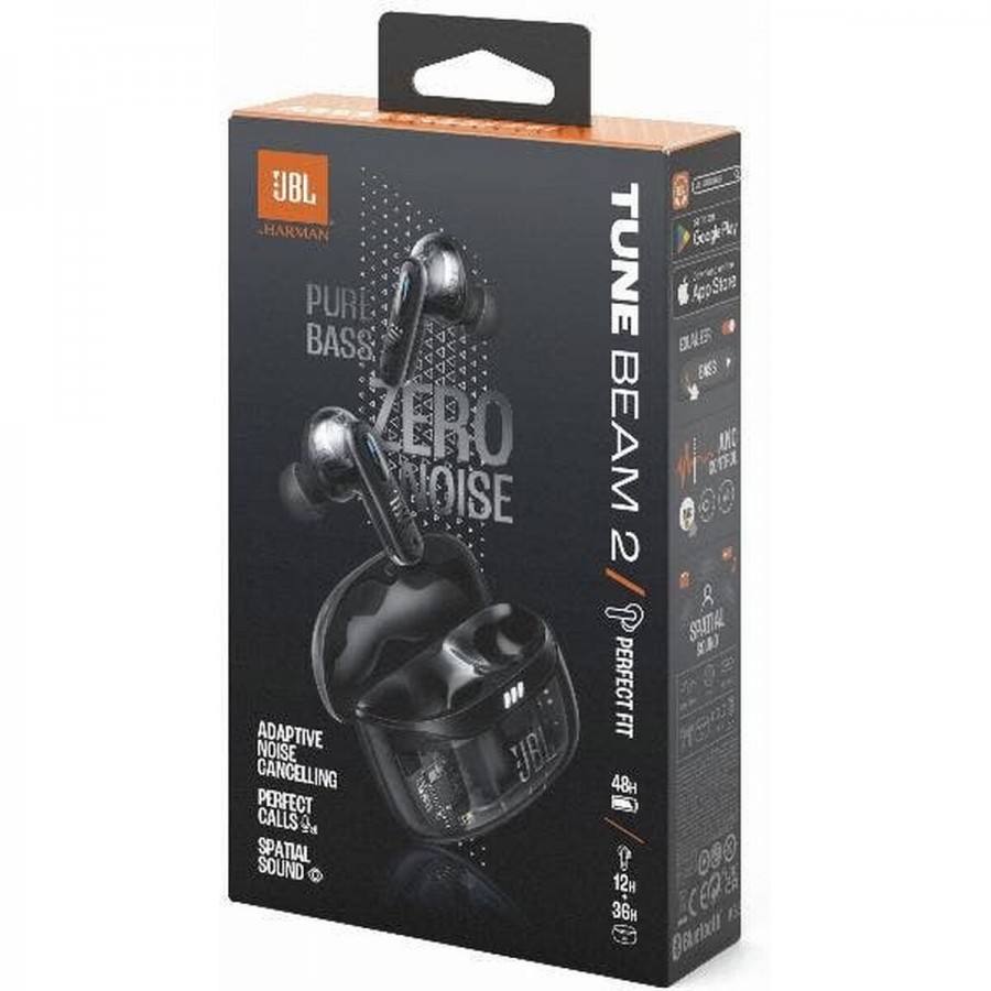 Deze JBL Tune Beam 2 Ghost Black in-ear hoofdtelefoon biedt een ongeëvenaarde draadloze luisterervaring met krachtige JBL Pure Bass Sound die je meesleept in je muziek. Geniet van een indrukwekkende totaalweergavetijd van wel 48 uur, zodat je dagenlang ononderbroken kunt luisteren. De geavanceerde Adaptive Noise Cancelling-technologie stelt je in staat om zelf te bepalen hoeveel van de buitenwereld je wilt horen, terwijl het robuuste IP54-ontwerp bescherming biedt tegen stof en water. Met de JBL Headphones-app personaliseer je eenvoudig je geluidsprofiel en bediening, waardoor elke luistersessie volledig op jouw wensen is afgestemd.