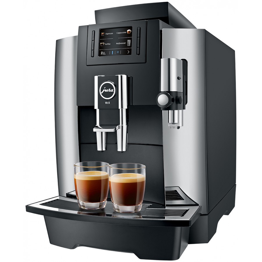 Waar klanten, medewerkers en gasten van koffie genieten, heerst een prettige sfeer. Koffie zorgt immers voor een ontspannen, communicatieve én productieve omgeving. Wie genot, een grote diversiteit aan koffiespecialiteiten en schoonheid op prijs stelt, maakt met de WE8 een uitstekende keuze. Een waterreservoir met een inhoud van 3 l, een bonenreservoir voor 500 g koffiebonen en een koffieresidubak met een capaciteit van 25 porties maken van de elegante Professional-volautomaat een ideale oplossing op locaties waar dagelijks ca. 30 koffiespecialiteiten worden bereid.