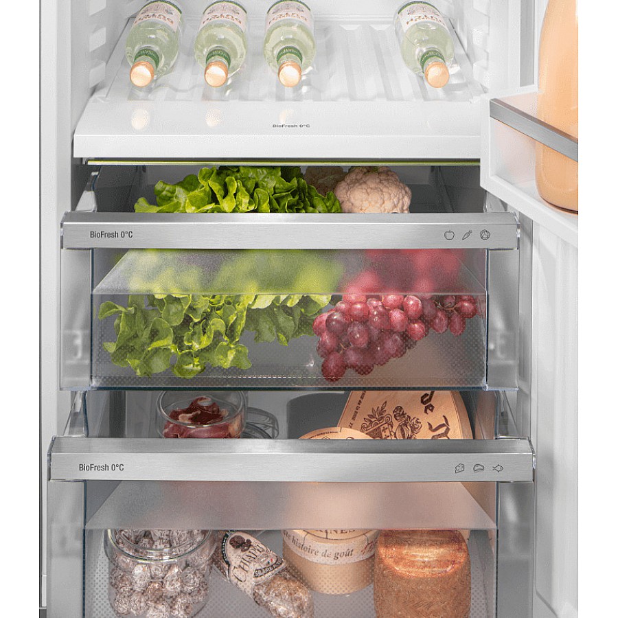 Het deelbare draagplateau en het geïntegreerde flessenplateau bieden extra flexibiliteit. In de 2 BioFresh laden op telescooprails bewaart u groenten en fruit tot 3x langer dan in een normale groentelade. Het FreshAir filter zorgt voor een fris interieur en het NoFrost vriesdeel hoeft u nooit te ontdooien. Maak in een handomdraai 60 ijsblokjes met de EasyTwist-Ice. Geschikt voor smarthome toepassingen.
