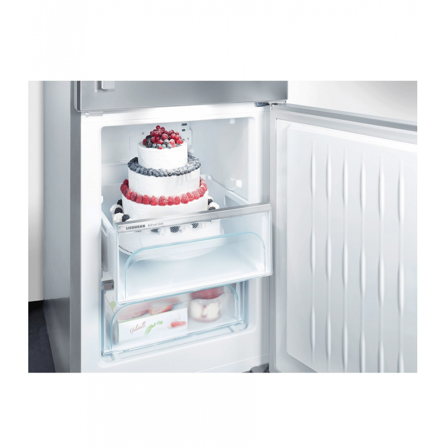 De Liebherr CBNef 5735-21 koel-vriescombinatie heeft een netto inhoud van 393 liter. Daarvan neemt het koelgedeelte 281 liter in en het vriesgedeelte 112 liter. De koel-vriescombinatie is 201 cm hoog en heeft een breedte van 70 cm, met een diepte van 67 cm. Deze koel-vriescombinatie heeft energielabel D. Het apparaat is voorzien van no frost zodat je het vriesgedeelte nooit hoeft te ontdooien.