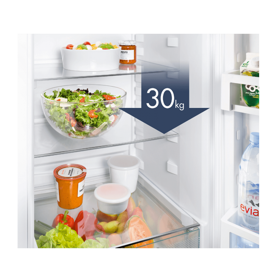 Of je nu voedsel wilt invriezen of bewaren, het 4 sterren vriesvak van deze koel-/vrieskast zorgt voor optimale prestaties en betrouwbaarheid. De geïntegreerde greep maakt het openen van de deuren eenvoudig en moeiteloos, terwijl het flessenrek en andere handige functies zorgen voor een georganiseerde en efficiënte opslag van al je levensmiddelen.
