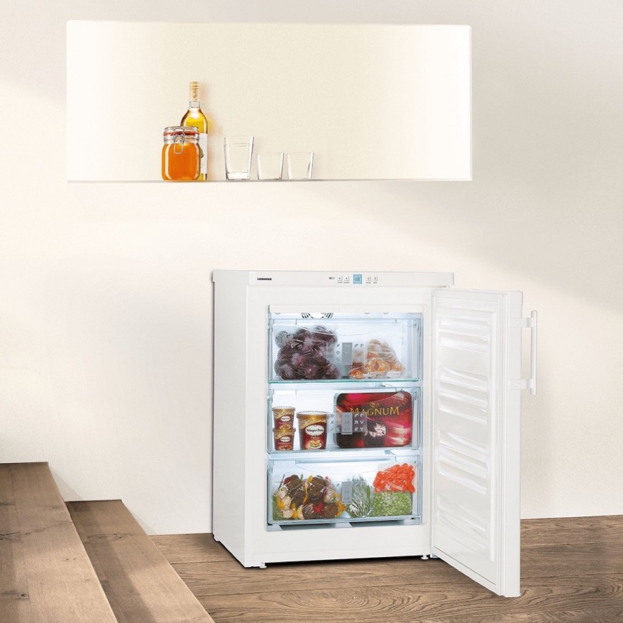 De Liebherr GNP 1076is een tafelmodel diepvrieskast met 99 liter inhoud. De 60 cm brede vrieskast is voorzien van drie transparante laden en heeft een energielabel D.