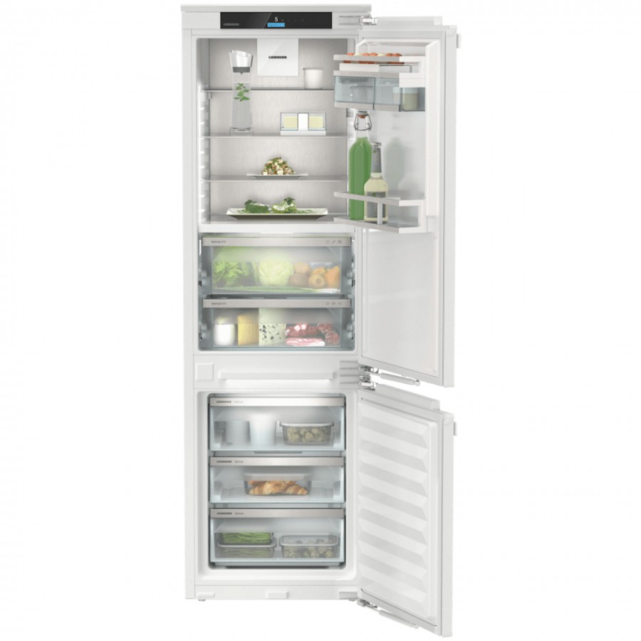 Deze Liebherr ICBNBI 5153-20 inbouw koel-vriescombinatie combineert innovatieve technologie met een stijlvol design voor een optimale keukenintegratie. Dankzij de BioFresh-technologie blijven verse producten zoals groenten, fruit, vlees en zuivel aanzienlijk langer vers. Het NoFrost-systeem zorgt voor een ijsvrije vriezer, waardoor ontdooien tot het verleden behoort. Met de SoftSystem-deursluiting sluit de deur geruisloos, zelfs bij volledige belading. De SmartDeviceBox-integratie maakt slimme bediening mogelijk, terwijl LED-wandpanelen voor een perfect verlicht interieur zorgen.