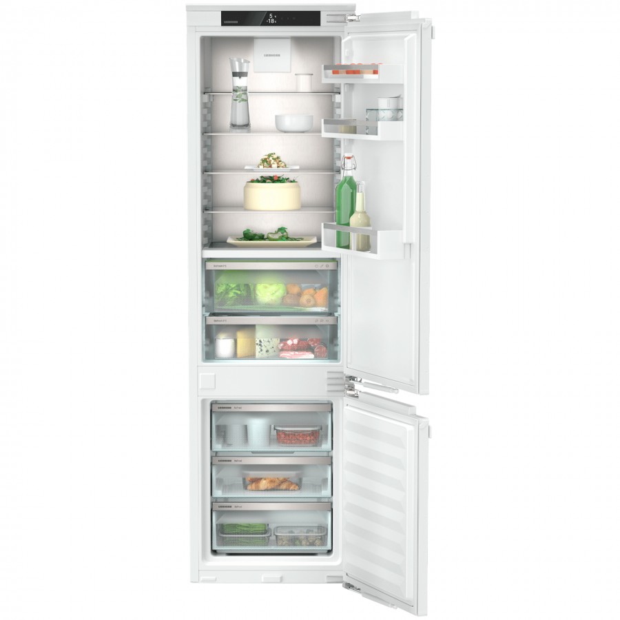 Deze Liebherr ICBNC 5623-20 inbouw koel-vriescombinatie combineert innovatieve technologie met praktisch design voor optimaal gebruiksgemak. Dankzij het NoFrost-systeem hoeft u nooit meer handmatig te ontdooien, terwijl de BioFresh-laden groenten, fruit, vlees en vis tot drie keer langer vers houden. Het FreshAir-filter zorgt voor een frisse geur en de SoftSystem-deuren sluiten altijd zacht en geruisloos. Met een energiezuinige werking en een ruim interieur biedt deze combinatie alles voor een moderne keuken.