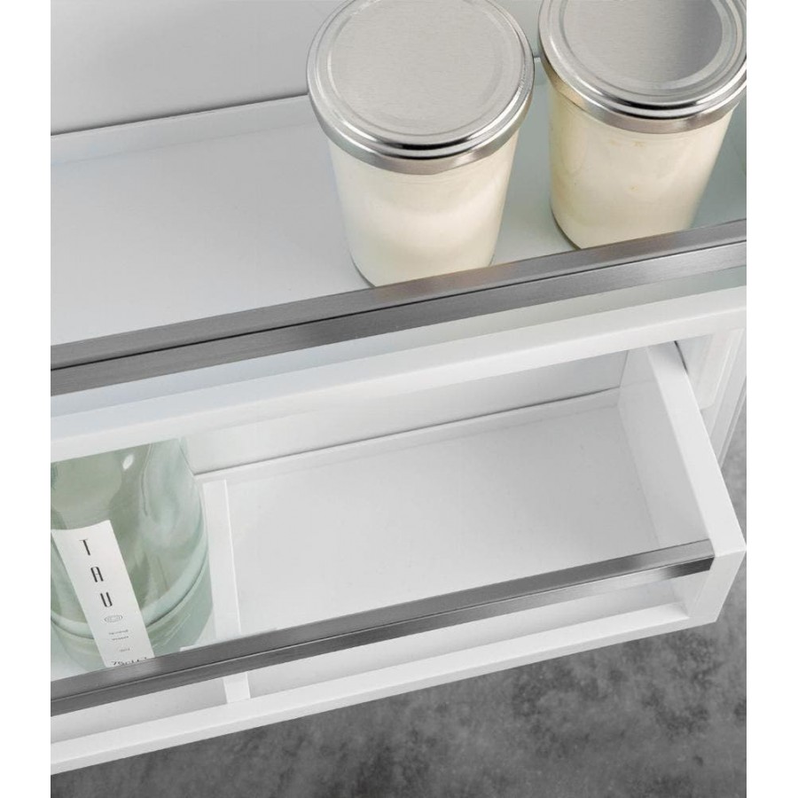 Het interieur van deze inbouw koel/vriescombinatie uit de Pure-serie is ontworpen om aan al uw behoeften te voldoen. De EasyFresh lade zorgt voor een ideale luchtvochtigheid voor uw groenten en fruit, terwijl het ruime koeldeel gemakkelijk plaats biedt aan een volledige bakplaat en wordt verlicht door de energiezuinige LED plafondverlichting. Bovendien zorgt het FreshAir filter ervoor dat uw koelkast altijd fris ruikt, terwijl het SmartFrost vriesdeel snel kan worden ontdooid en plaats biedt aan grote verpakkingen. En voor degenen die graag een stapje verder gaan in hun slimme huis, is de optionele SmartDeviceBox beschikbaar voor naadloze integratie met smarthome toepassingen.
