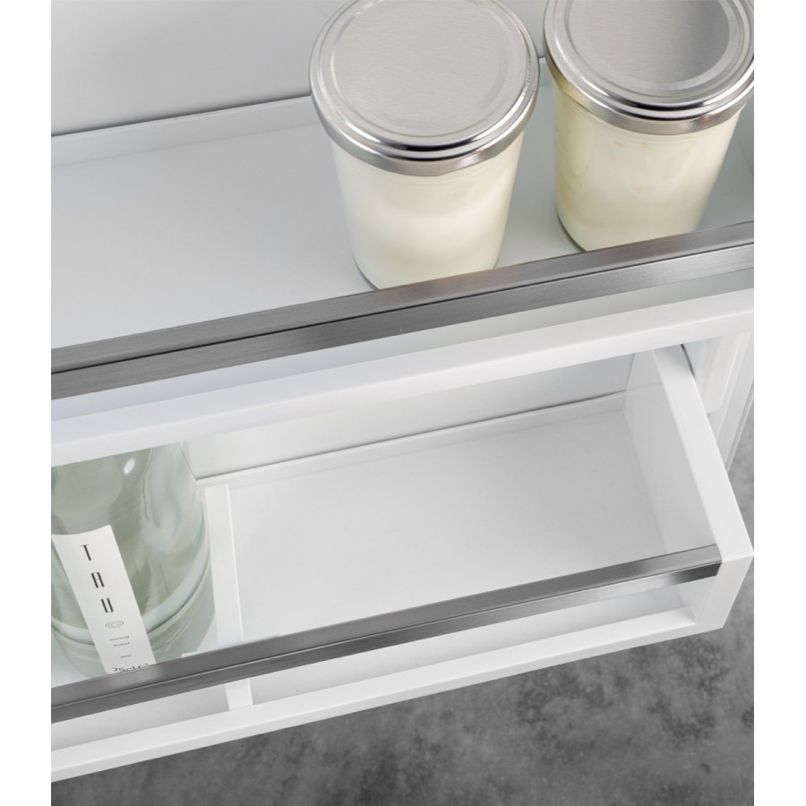 Daarnaast heeft deze koelkast SuperCool voor het snel afkoelen van nieuw toegevoegde etenswaren. De temperatuur wordt gedurende 12 uur tijdelijk verlaagd naar +2°C, zodat de koelkast niet opwarmt en nieuwe levensmiddelen extra snel op de temperatuur worden gebracht. De koelkast heeft een energielabel D en is voorzien van een deur-op-deur scharniersysteem.