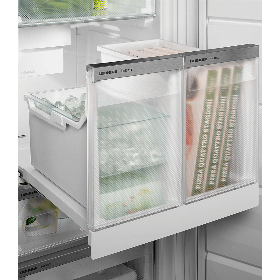 Deze NoFrost vrieskast hoeft u nooit te ontdooien. Met het Touch & Swipe kleurendisplay worden alle functies bediend en de goed verlichte telescopische laden met BlackSteel afwerking kunnen volledig worden uitgetrokken. De uittrekbare IceTower biedt een ijsblokjesvoorraad van 5,7 kilo en wordt dankzij de vaste wateraansluiting continue aangevuld. De SoftSystem deursluiting zorgt dat de deur altijd zacht sluit en met de warmewand is deze vriezer zonder condensproblemen naast een inbouw koeler of wijnkast te plaatsen.