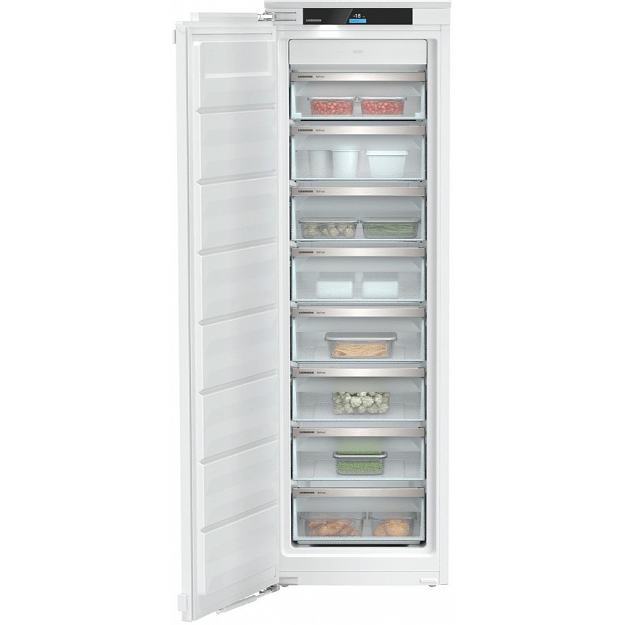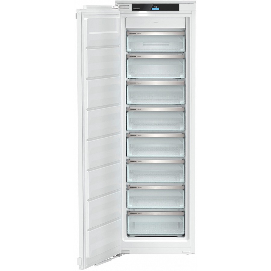 Met het Touch & Swipe kleurendisplay worden alle functies bediend en de goed verlichte telescopische laden kunnen volledig worden uitgetrokken. De SoftSystem deursluiting zorgt dat de deur altijd zacht sluit en met de warmewand is deze vriezer zonder condensproblemen naast een inbouw koeler of wijnkast te plaatsen. VarioSpace voor extra hoge opbergruimte is standaard en de optionele SmartDeviceBox biedt extra functies zoals de BottleTimer: ontvang een bericht wanneer uw drankfles is afgekoeld. De LED verlichting zorgt voor een goed overzicht in de uitgetrokken laden. De Liebherr vriezer heeft energielabel E en een deur-op-deur scharniersysteem.