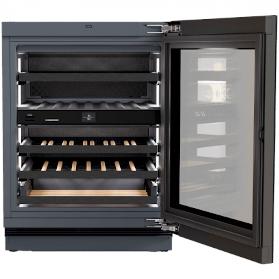 De greeploze glasdeur met SoftClose-mechanisme sluit zacht en geruisloos, ideaal voor moderne keukens. De TipOpen-bediening maakt openen eenvoudig, zelfs zonder handgrepen. De houten FlexFit-plateaus op telescooprails bieden flexibele opbergmogelijkheden en een optimaal overzicht van uw flessen, terwijl het aluminium front en de LED-lichtzuilen voor een verfijnde uitstraling zorgen.