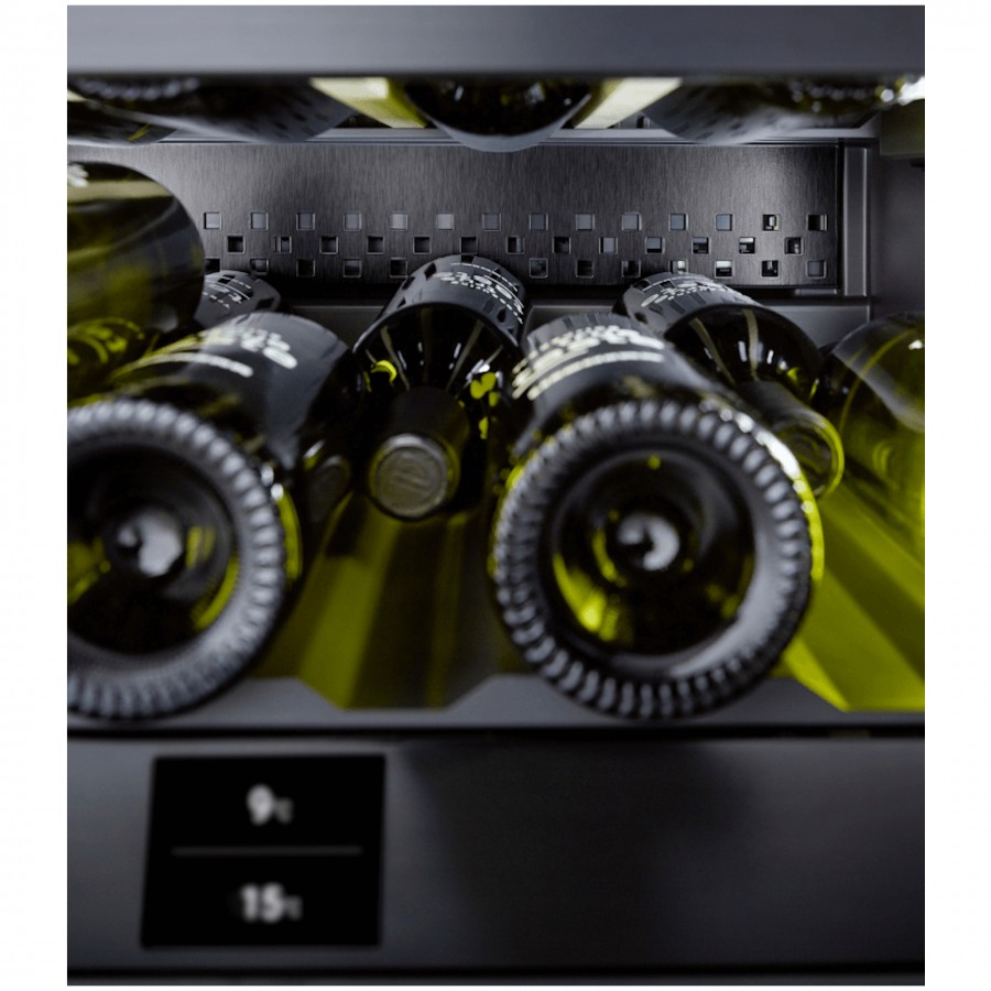 Het geïntegreerde FreshAir filter zorgt voor een constante luchtcirculatie en voorkomt ongewenste geuren, waardoor de smaak en kwaliteit van uw wijnen behouden blijven. De energiezuinige LED zoneverlichting biedt niet alleen een visueel aantrekkelijke presentatie, maar maakt het ook eenvoudig om uw favoriete fles te selecteren.