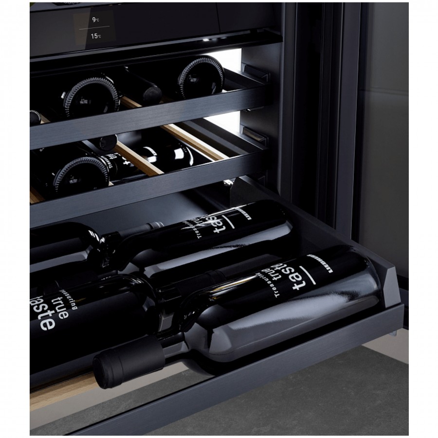 Dankzij geoptimaliseerde componenten en een efficiënte constructie werkt deze wijnkast bijna geruisloos. Het FreshAir-filter houdt de lucht fris, terwijl de LED-lichtzuilen en houten plateaus een elegante uitstraling geven. De uittrekbare plateaus op telescopische rails bieden bovendien gemakkelijke toegang tot uw collectie.
