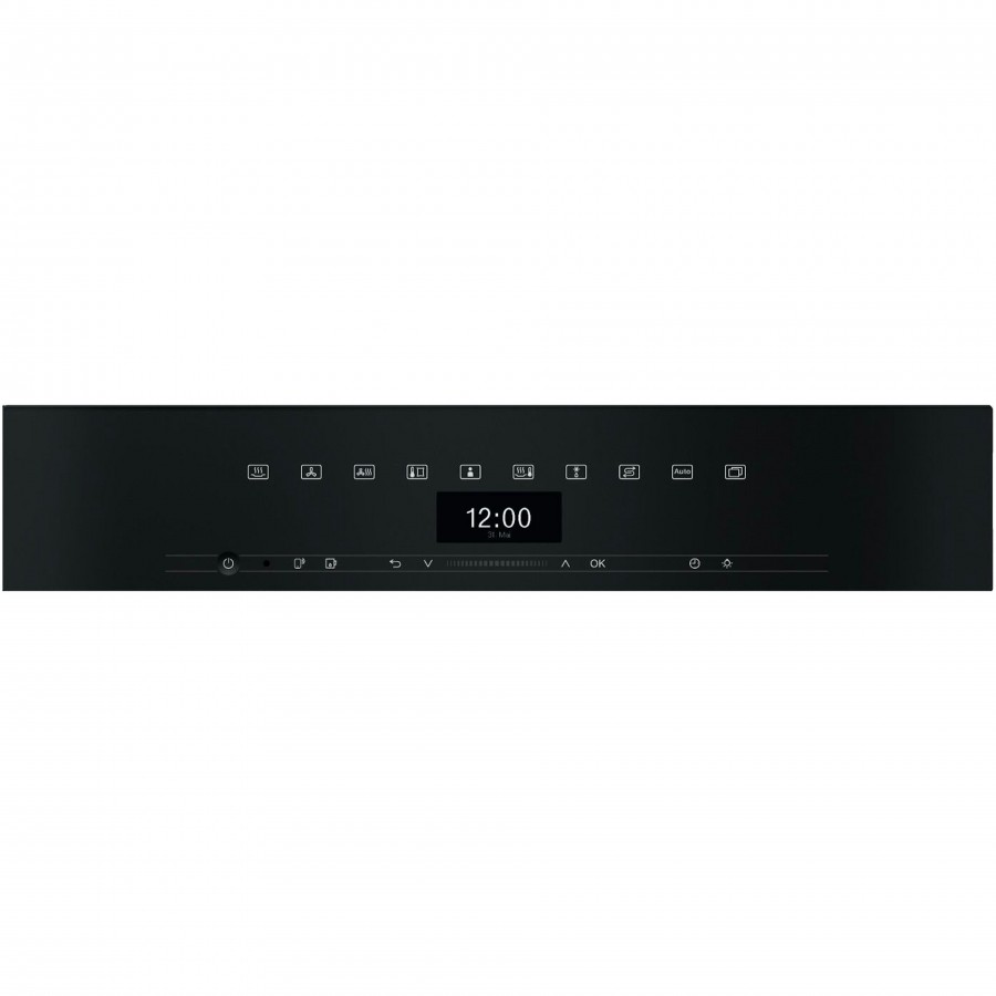 Het overzichtelijke display met sensorbediening zorgt voor een intuïtieve bediening, zodat u precies kunt instellen wat u nodig hebt. Het waterreservoir is discreet achter het paneel geplaatst, waardoor de oven een strakke en moderne uitstraling behoudt.