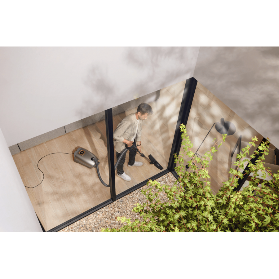 Deze Miele GUARD L1 COMFORT XL stofzuiger met zak combineert krachtige prestaties met innovatieve technologie voor een grondige reiniging. Met het HEPA AirClean-filter biedt hij een oplossing voor mensen met allergieën, terwijl de Parquet Twister XL van 41 cm grote harde vloeren moeiteloos aanpakt. Dankzij de DynamicDrive strijkrollen werkt hij stil en zacht, zonder concessies te doen aan efficiëntie. De Automatic Mode past het vermogen automatisch aan het oppervlak aan, zodat u geen handmatig hoeft te schakelen. Het premium design en de hoogwaardige materialen maken deze stofzuiger niet alleen functioneel, maar ook stijlvol.