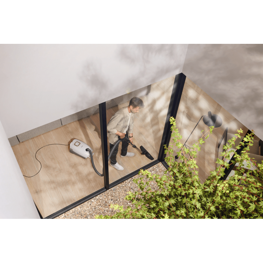De slimme combinatiezuigmond ruimt stof van meubels en uit kieren op zonder accessoires te wisselen. De handgreep bevat een reliëfborstel voor kwetsbare oppervlakken, waardoor je tijdens het stofzuigen moeiteloos tussen taken kunt schakelen.
