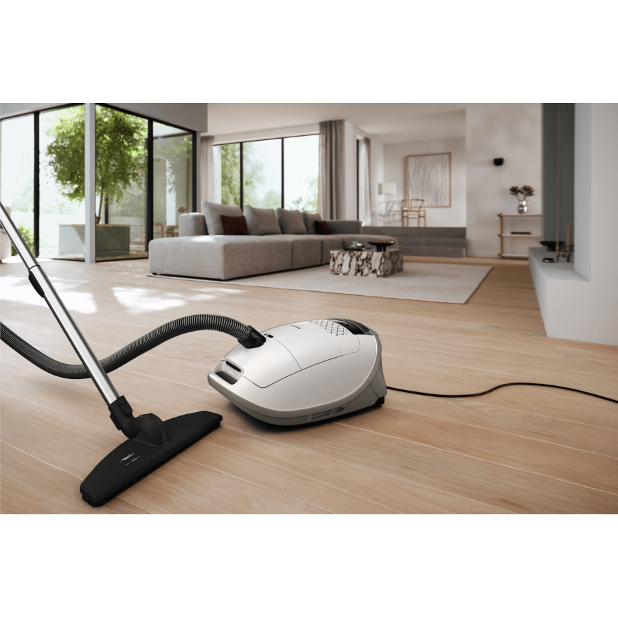 Deze Miele GUARD M1 PARQUET XL stofzuiger met zak combineert krachtige prestaties met een stijlvol design, speciaal ontworpen voor grote harde vloeren. Met een hoog zuigvermogen en geoptimaliseerde luchtkanalen zorgt hij voor een grondige reiniging zonder krassen. De extra brede Parquet Twister XL-zuigmond (41 cm) bespaart tijd en is ideaal voor efficiënt onderhoud. Dankzij het ComfortFit-filtersysteem geniet je van een betere luchtkwaliteit en minder stof. Bovendien is deze stofzuiger gebouwd voor duurzaamheid, getest op een levensduur van 20 jaar, en biedt hij wendbaarheid met de flexibele kierenborstel voor lastige hoeken.
