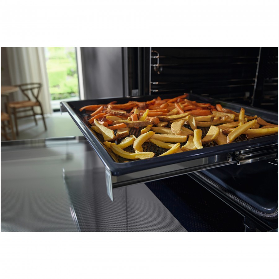 De geïntegreerde AirFry-functie maakt gebruik van hete luchtcirculatie om knapperige en krokante gerechten te bereiden, zonder dat er extra vet nodig is. Dit betekent gezonder eten zonder in te leveren op smaak of textuur, ideaal voor frietjes, kip of zelfs groentechips.