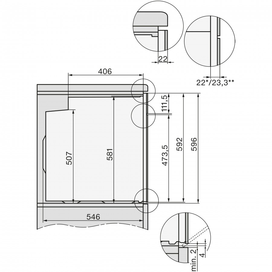 | Minimale nisbreedte | 560 mm |