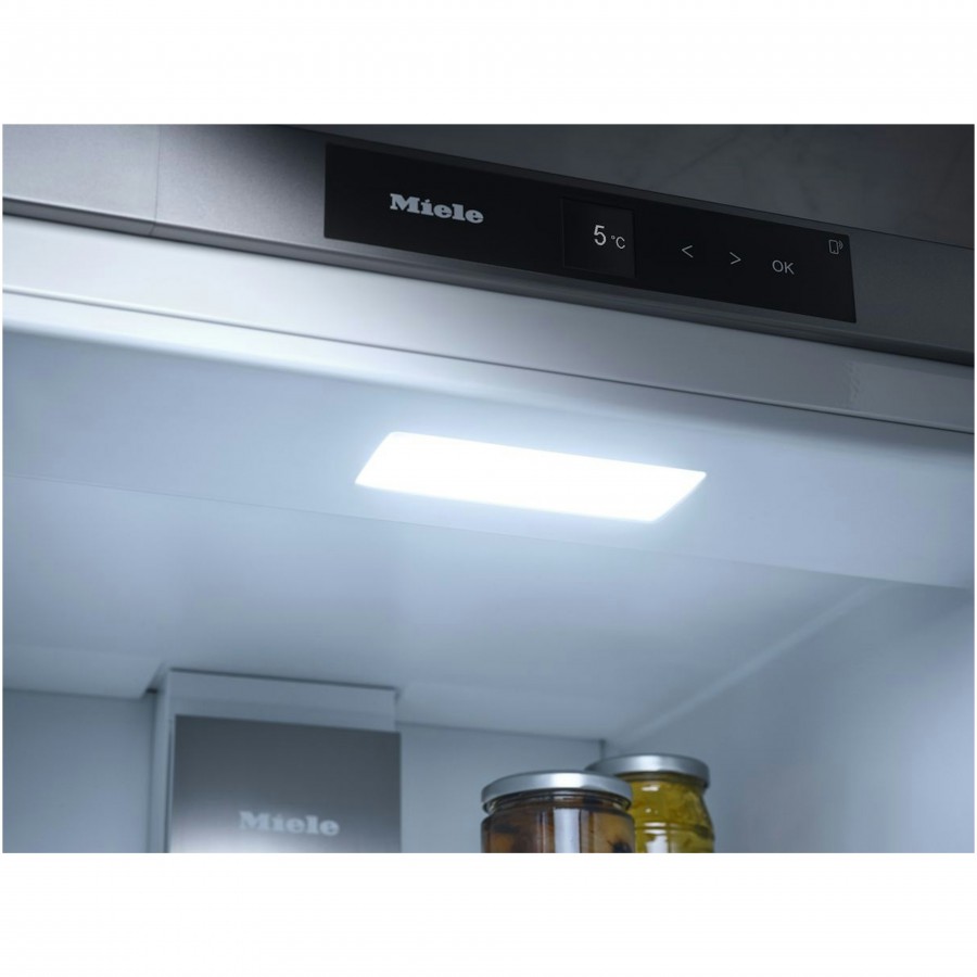 De DailyFresh-lade in de Miele K 7437 D biedt een geoptimaliseerde omgeving voor groenten en fruit. Dankzij de verstelbare vochtigheidsregeling blijven voedingsmiddelen langer vers en behouden ze hun natuurlijke smaak. Dit vermindert voedselverspilling en zorgt voor een betere kwaliteit van uw verse producten.