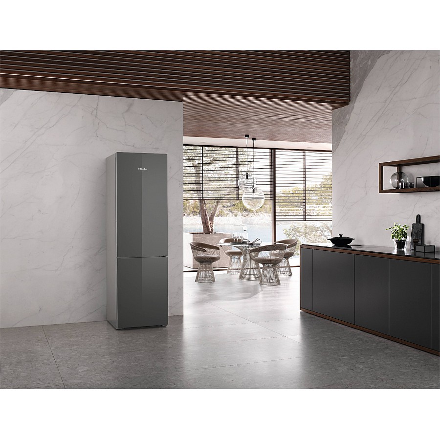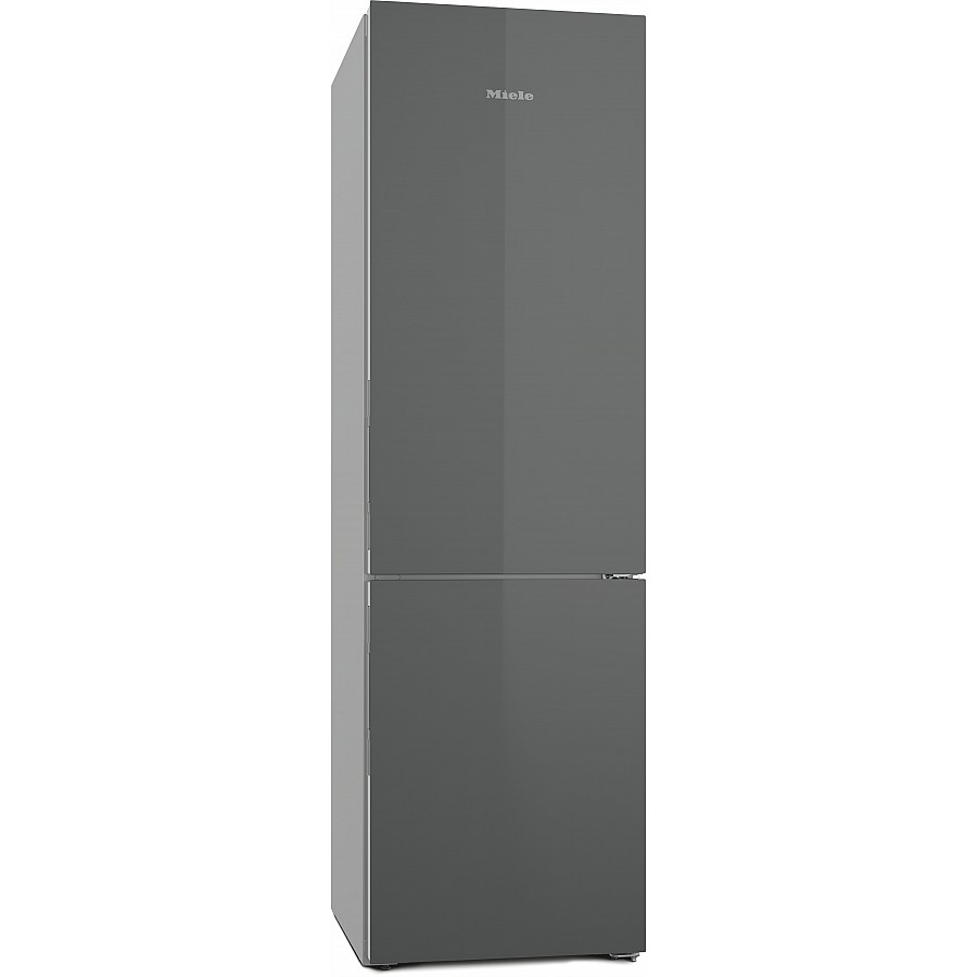 Deze mooie Miele KFN 4898 AD koel-vriescombinatie met grafiet grijze glazen front heeft een ruimte netto inhoud van 362 liter. Daarvan neemt het koelgedeelte 259 liter in en het vriesgedeelte 103 liter. De koel-vriescombinatie is 201,5 cm hoog en heeft een breedte van 60 cm, met een diepte van 68 cm. Deze koel-vriescombinatie heeft energielabel A. Het apparaat is voorzien van no frost zodat je het vriesgedeelte nooit hoeft te ontdooien.