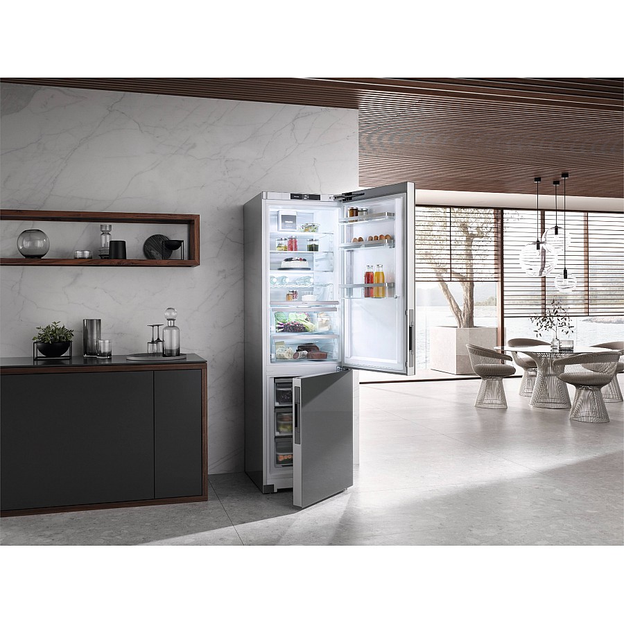 PerfectFresh technologie van Miele is perfect voor de houdbaarheid van al jouw etenswaren. Fruit, groenten, vis, vlees en zuivelproducten blijven tot wel drie keer langer fris. Dankzij DynaCool hoef je niet meer na te denken waar de producten in de koelkast komen te staan. De ventilator aan de achterkant laat de koude lucht circuleren in de koelkast. Hierdoor ontstaat een gelijkmatige temperatuur.