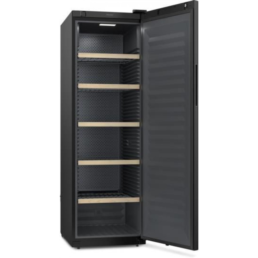 De energiezuinige LED-verlichting zorgt voor perfecte belichting van uw wijncollectie zonder warmte-afgifte. De enkele temperatuurzone handhaaft consistent de ideale opslagtemperatuur tussen 5°C en 20°C, waardoor elke fles onder optimale omstandigheden bewaard wordt. Het elegante design past moeiteloos in elk interieur.