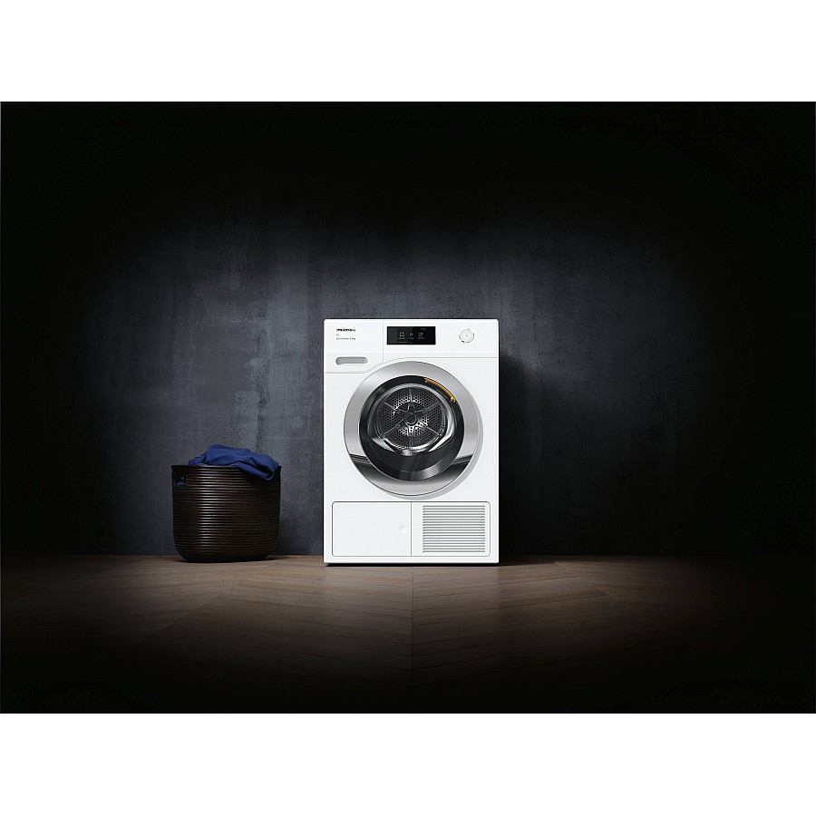 De zeer zuinige TCR790WP Eco & Steam warmtepompdroger uit de T1 serie van Miele beschikt uitgebreide opties en mogelijkheden. Zo heeft deze Miele een zuinig A+++ label, duidelijk schuingeplaatst display een vulgewicht van 9 kg en met de Softcare trommel is hij zuinig op uw wasgoed.